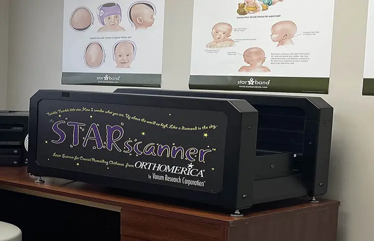 Utilizamos el sistema de escaneo láser 3D STARscanner™ para la fabricación precisa de órtesis craneales personalizadas. Este sistema es rápido (escaneo en menos de 2-5 segundos), seguro para los ojos (láser clase 1) y no invasivo.